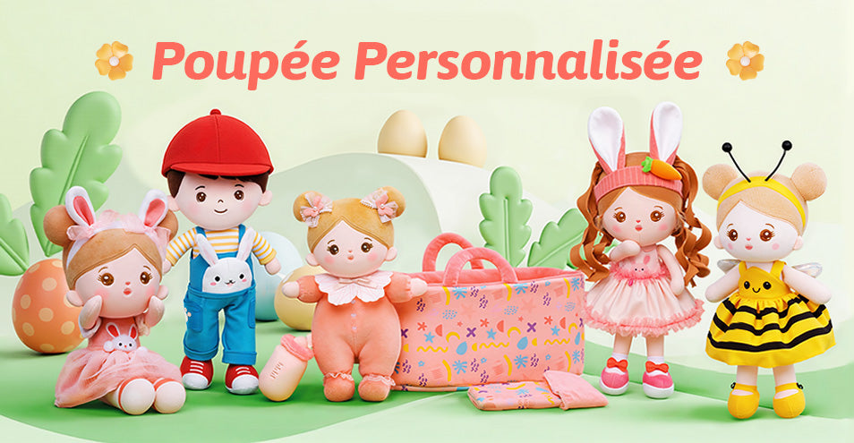 Personnalisée Poupée en Peluche avec Yeux Bleus Ouverts en Robe aux Carreaux Roses