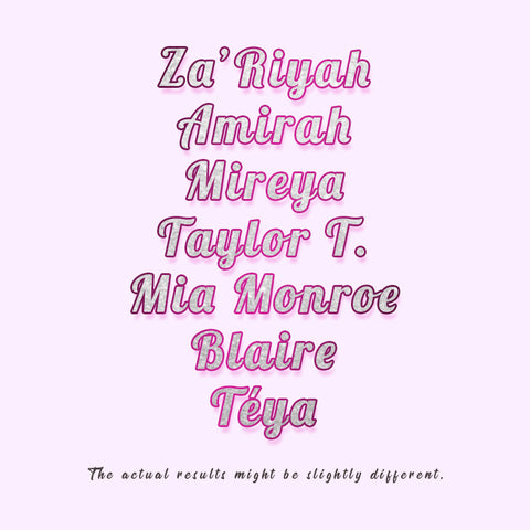 Jusqu’à 12 lettres peuvent être gravées. Veuillez noter le nom que vous devez personnaliser avant de commander. Après avoir terminé la personnalisation, nous prendrons une photo et l’enverrons à votre courrier afin que vous puissiez confirmer l’effet personnalisé