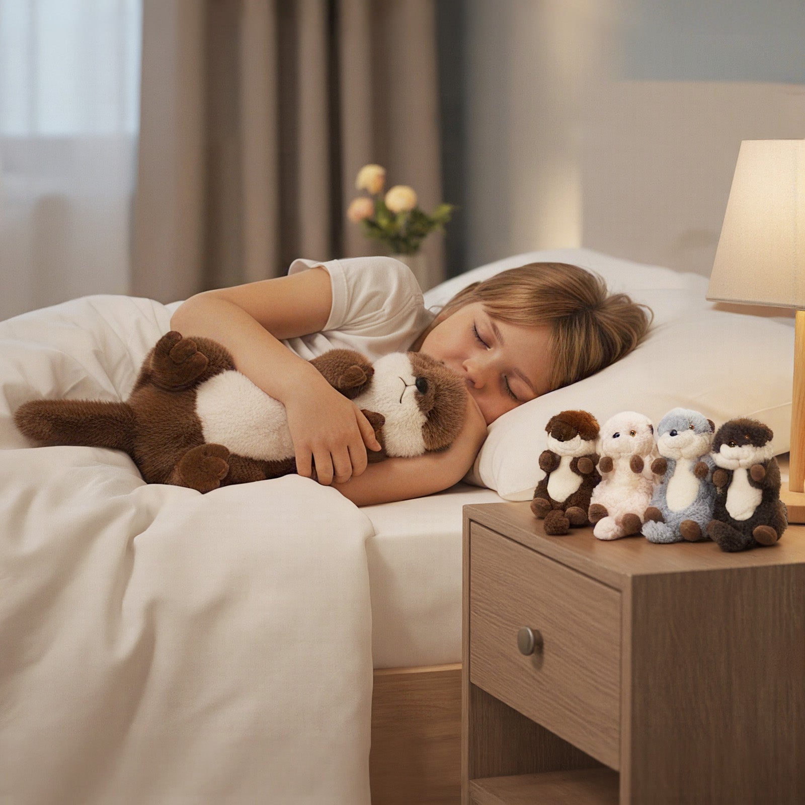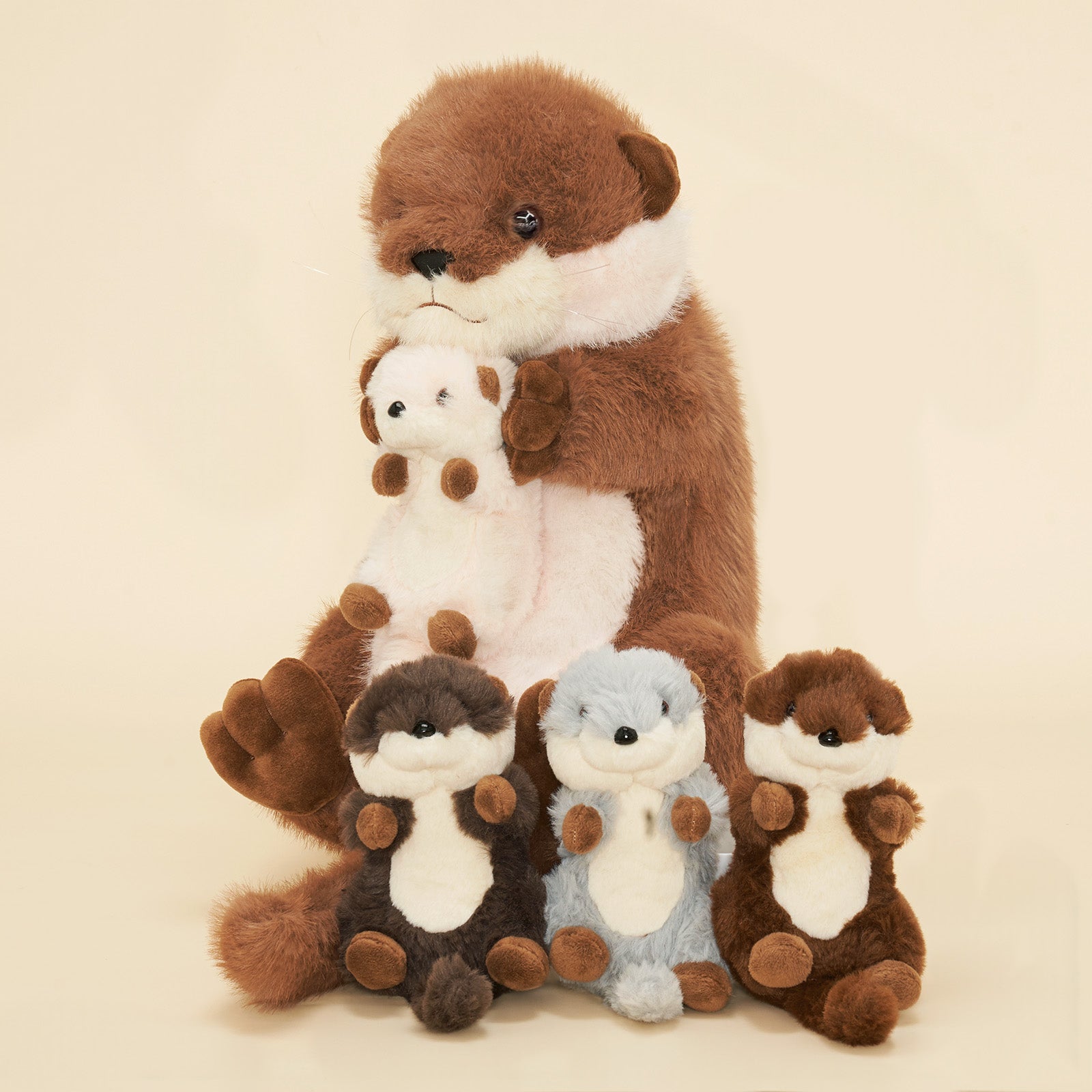 Cet ensemble de jeu doux comprend un sac Mère loutre en peluche de 47 cm pour ranger 4 bébés loutre, chacun avec une couleur et une expression différentes.